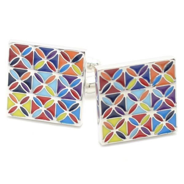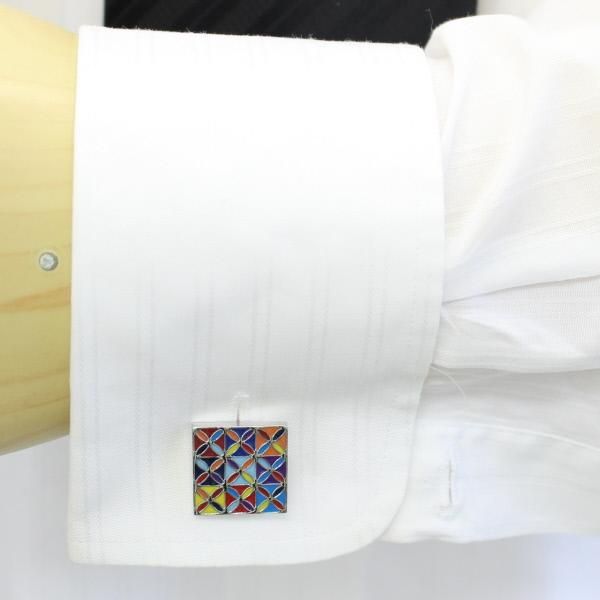 エキゾチックなカラフル・スクエアのカフス(カフリンクス/カフスボタン)