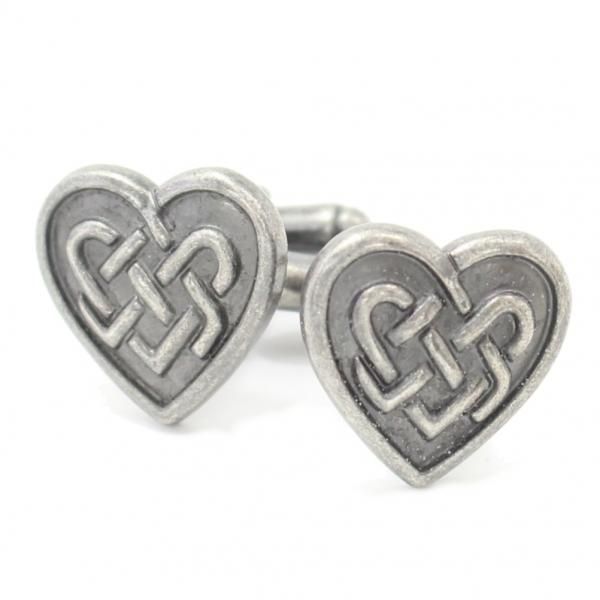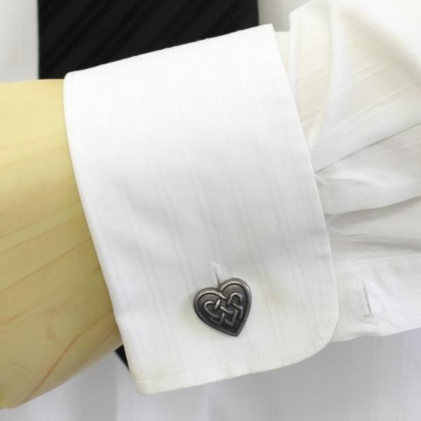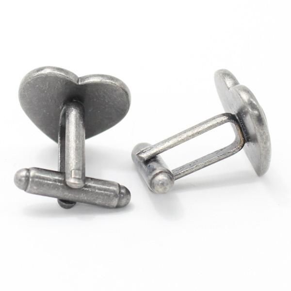 マットシルバー・燻銀風・ハートのカフス(カフリンクス/カフスボタン)