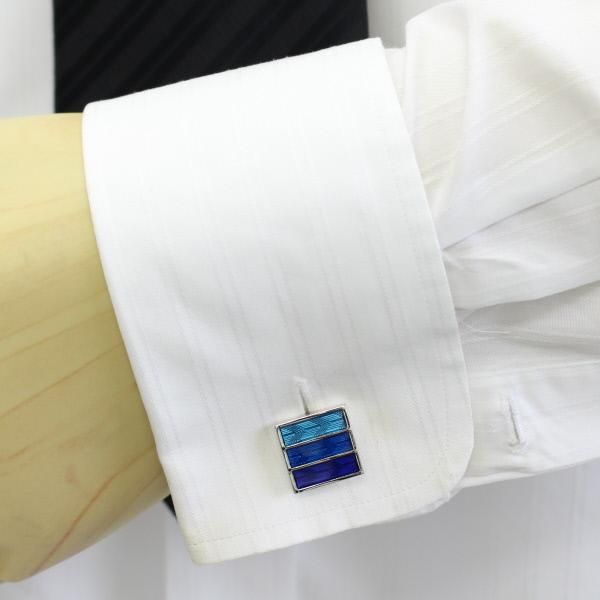 ブルーグラデーションラインの爽やかなカフス(カフリンクス/カフスボタン)