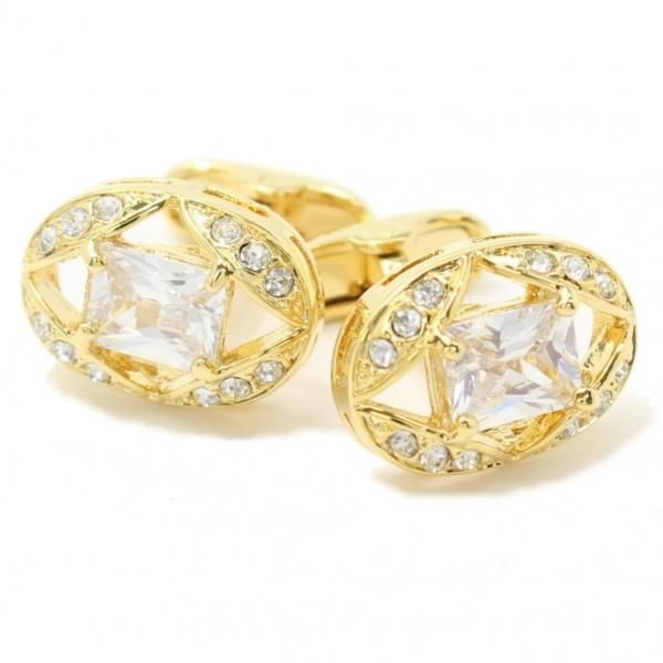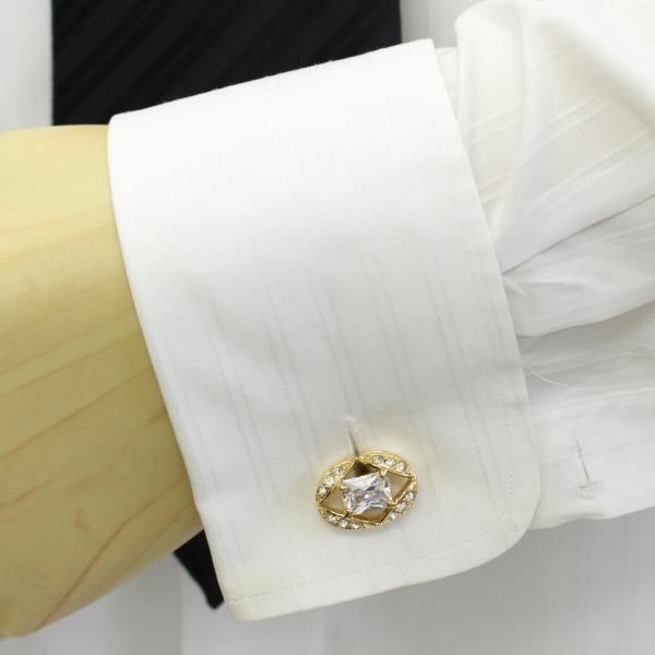 オーバル・ゴールドとクリアストーンが華麗なカフス(カフリンクス/カフスボタン)