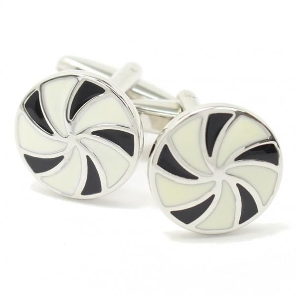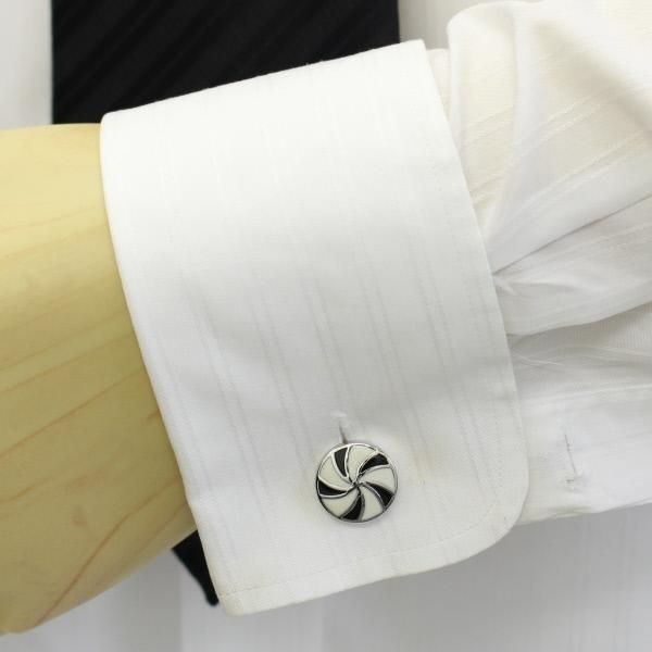 ブラック×ホワイトライン・ラウンドカフス(カフリンクス/カフスボタン)