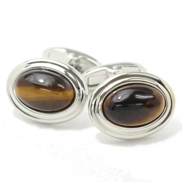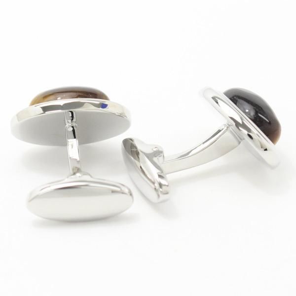 ブラウンキャッツアイ・立体オーバルのカフス(カフリンクス/カフスボタン)
