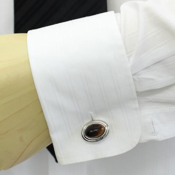 茶色のキャッツアイを使用した大人の雰囲気醸し出すお洒落なカフスです。