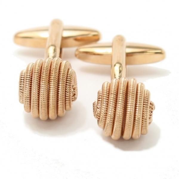 ピンクゴールドのラウンドバネのデザインカフス(カフリンクス/カフスボタン)
