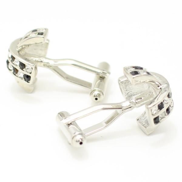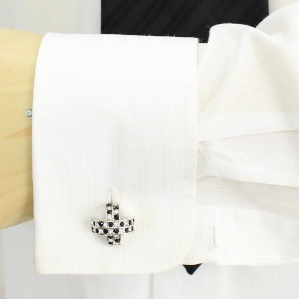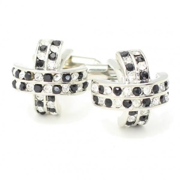 クロスライン・白黒ストーンのドームカフス(カフリンクス/カフスボタン)