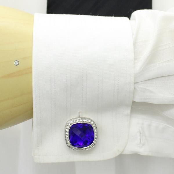 スクエアフォルムに、ブルーストーンとクリアストーンが輝くカフス。