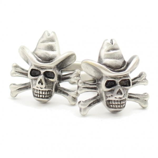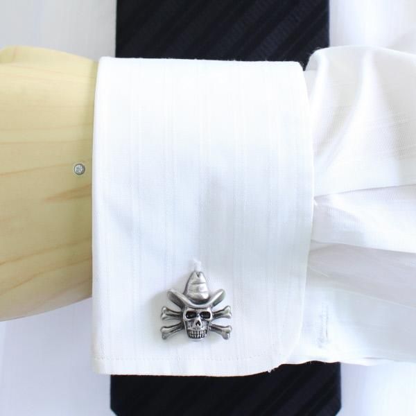 艶消しマットなシルバーの海賊モチーフのカフス