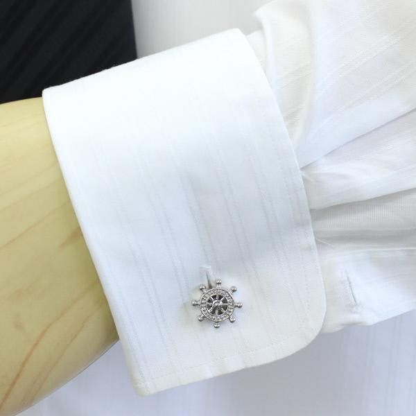 マリンテイスト・キラっと舵モチーフのカフス(カフリンクス/カフスボタン)