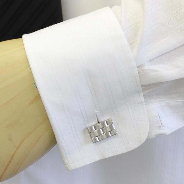 ウェーブのカッティングが美しいマットシルバーのカフス(カフリンクス/カフスボタン)
