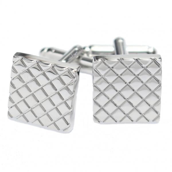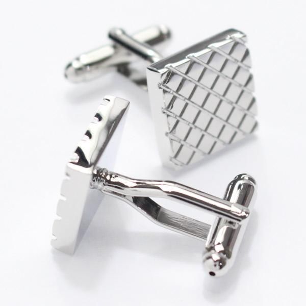 シルバー・スクエア・ダイヤ柄のカフス(カフリンクス/カフスボタン)