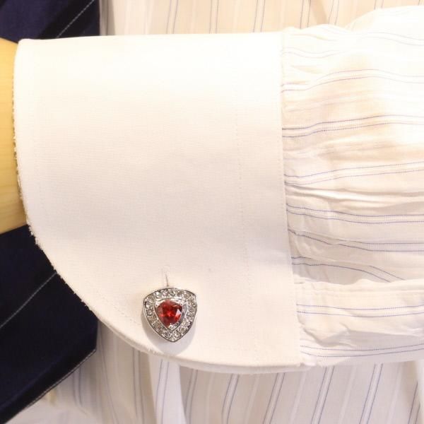 立体的なブリリアントカットのレッドストーンが、優雅に袖元を印象的に飾ります。