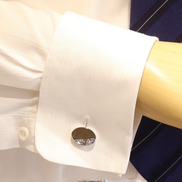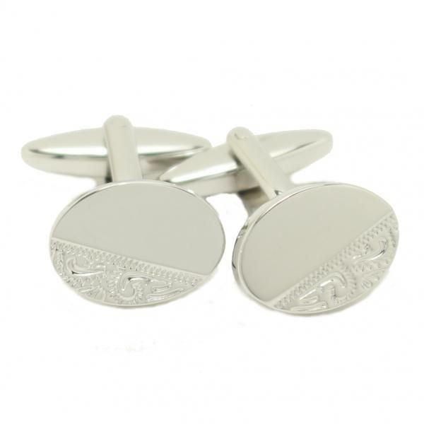 エレガントなレリーフ・シルバー・オーバルカフス(カフリンクス/カフスボタン)