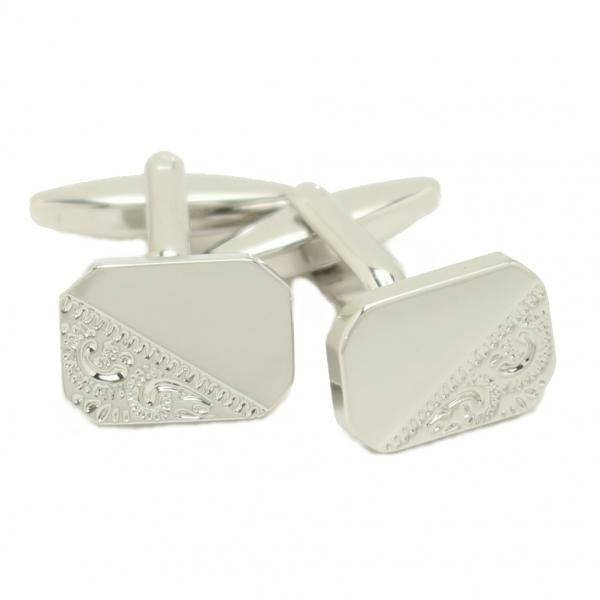 エレガントなレリーフ・シルバー・スクエアカフス(カフリンクス/カフスボタン)
