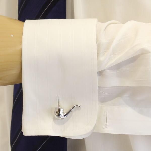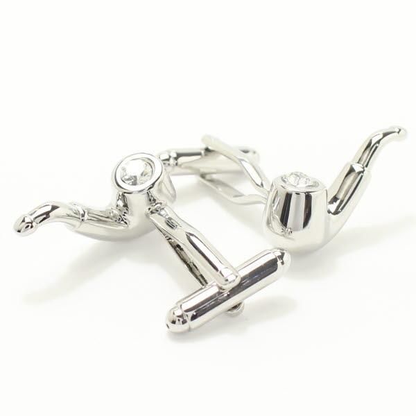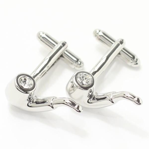 ストーンが輝くシルバーパイプのカフス(カフリンクス/カフスボタン)
