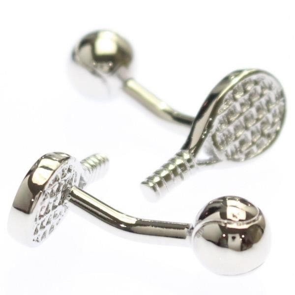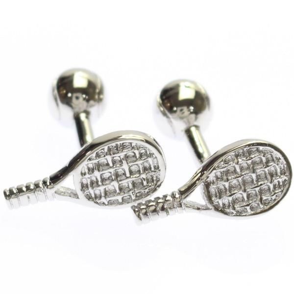 テニスラケット・シルバーのカフス(カフリンクス/カフスボタン)