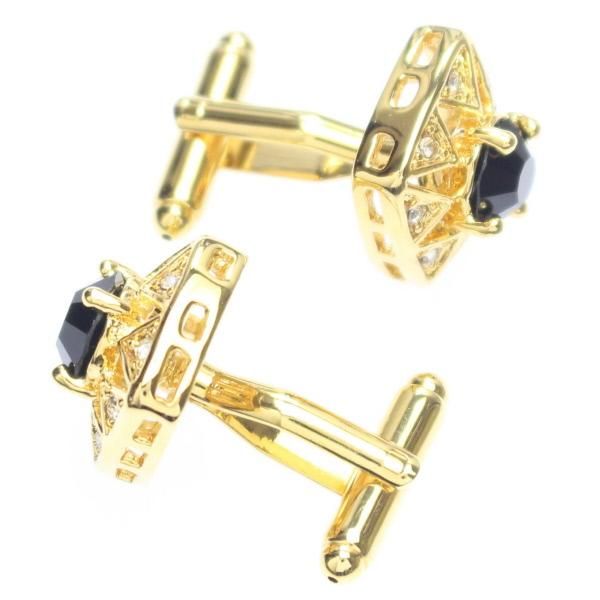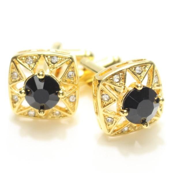ゴールド×ブラック・きらきらストーンのカフス(カフリンクス/カフスボタン)