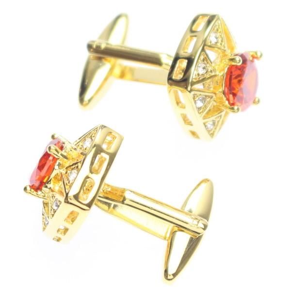 ゴールド×レッド・きらきらストーンのカフス(カフリンクス/カフスボタン)