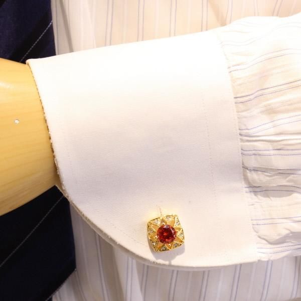立体的なブリリアントカットのレッドストーンが優雅に袖元を印象的に飾ります。