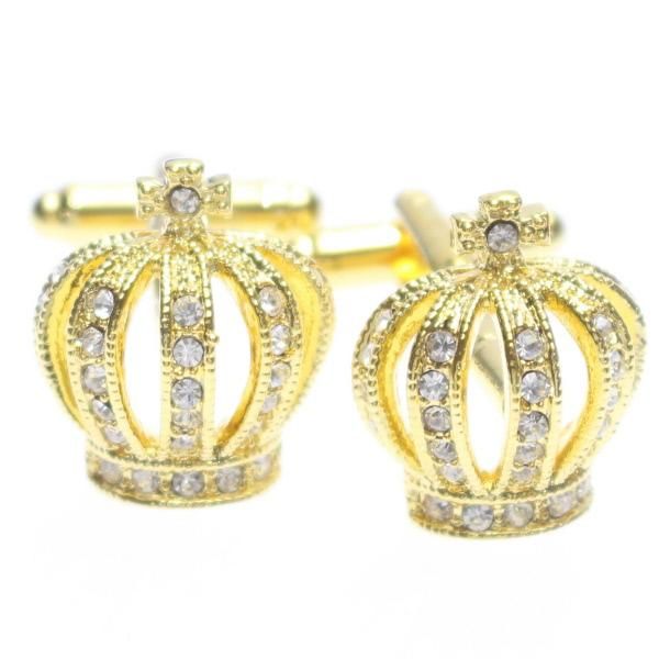 ゴールド×クリアストーン・きらきら王冠のカフス(カフリンクス/カフスボタン)