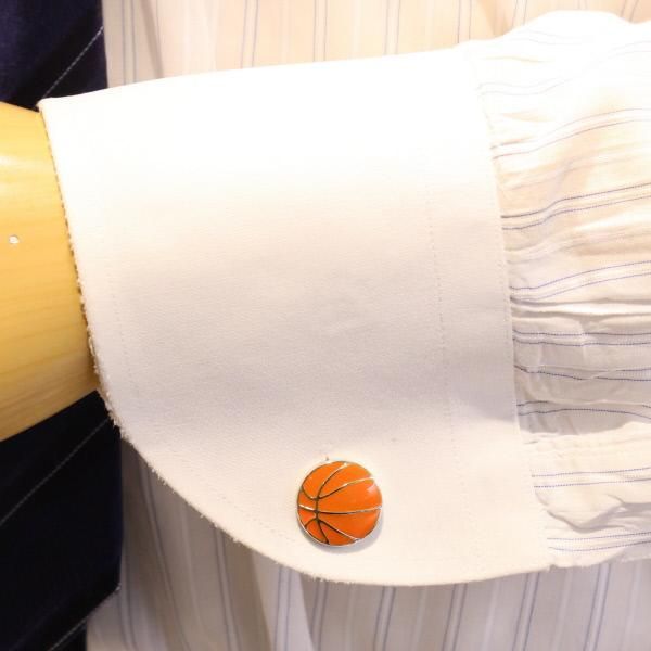オレンジのカラフルカフス?と思いきや、バスケットボールのモチーフカフス。
