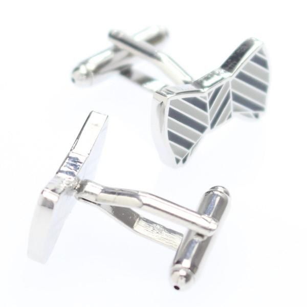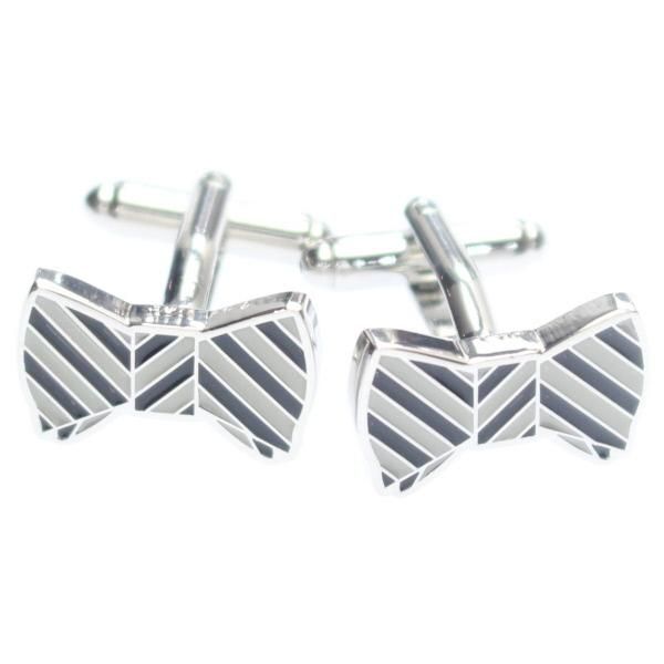 ブラック×グレー・リボンのカフス(カフリンクス/カフスボタン)