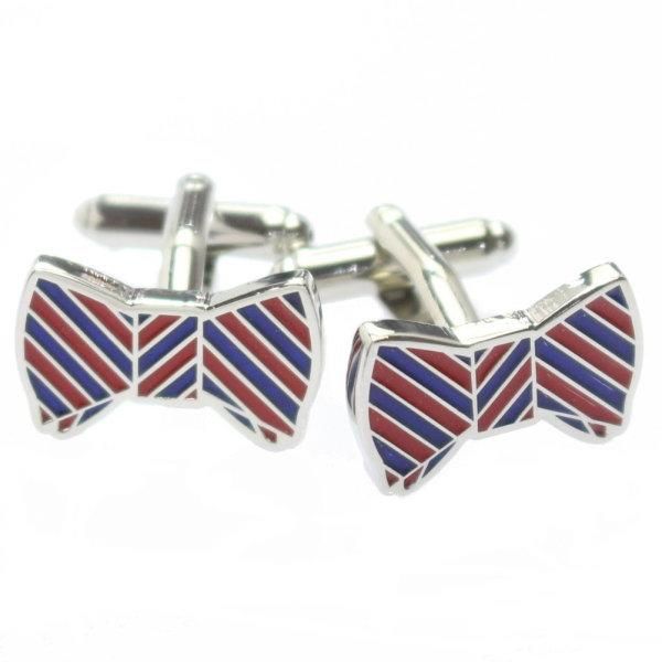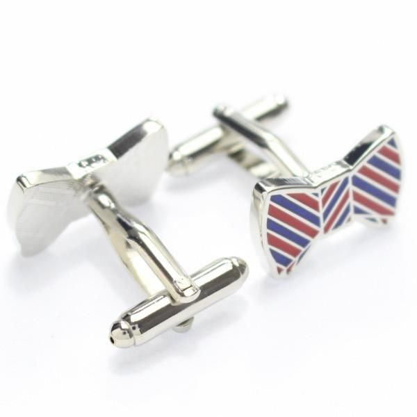ブルー×レッド・リボンのカフス(カフリンクス/カフスボタン)