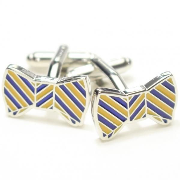ブルー×イエロー・リボンのカフス(カフリンクス/カフスボタン)