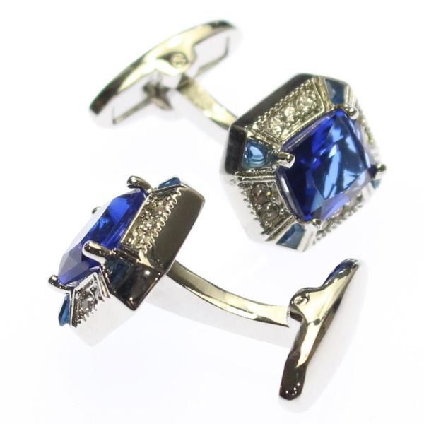 ブルーストーン×クリアストーンのきらきらカフス(カフリンクス/カフスボタン)
