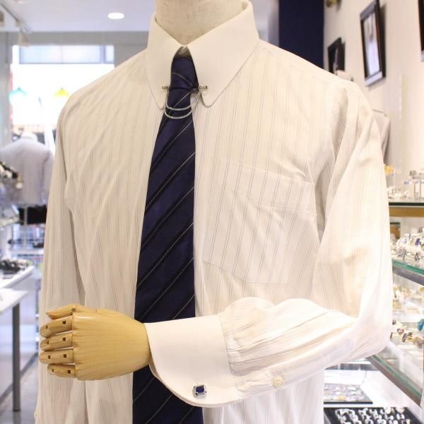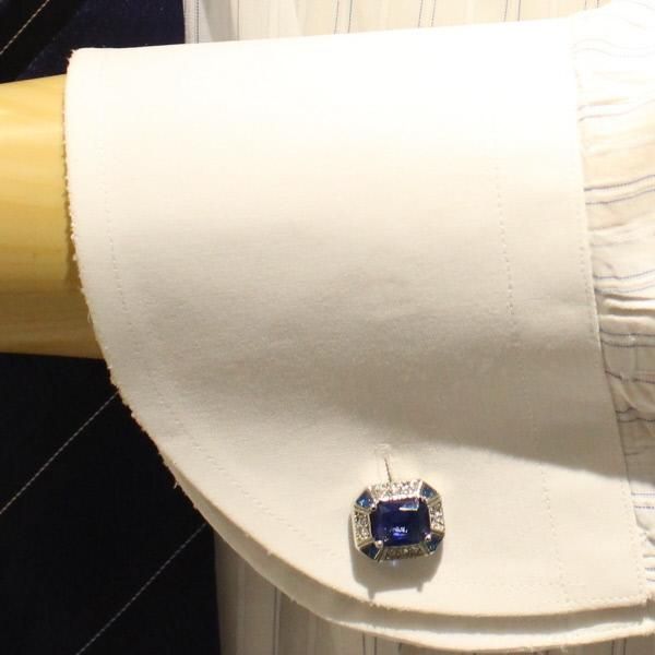 深みのあるブルーが存在感満点で、袖元優雅に演出してくれますよ!