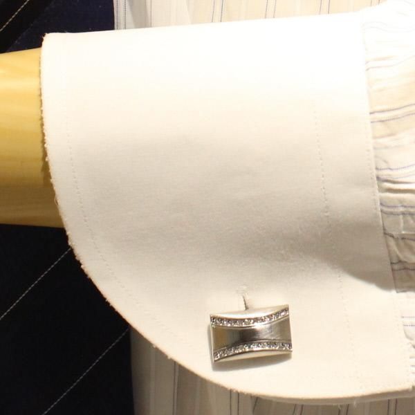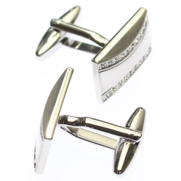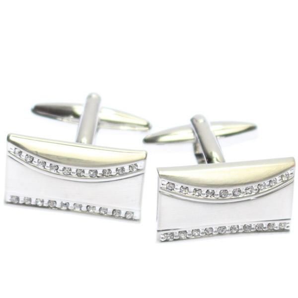 シルバー・ラインストーン・レクタングルのカフス(カフリンクス/カフスボタン)