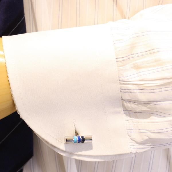 筒形のシルバーの中央に、マルチカラーがワンポイントのカフス。