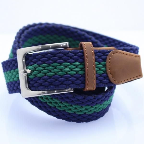 メッシュベルト・ネイビー×グリーン・着け心地抜群なゴム素材伸縮タイプ・フリーサイズ