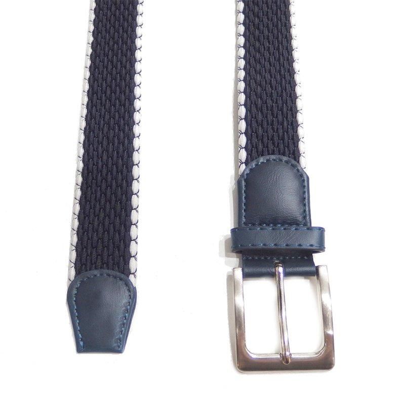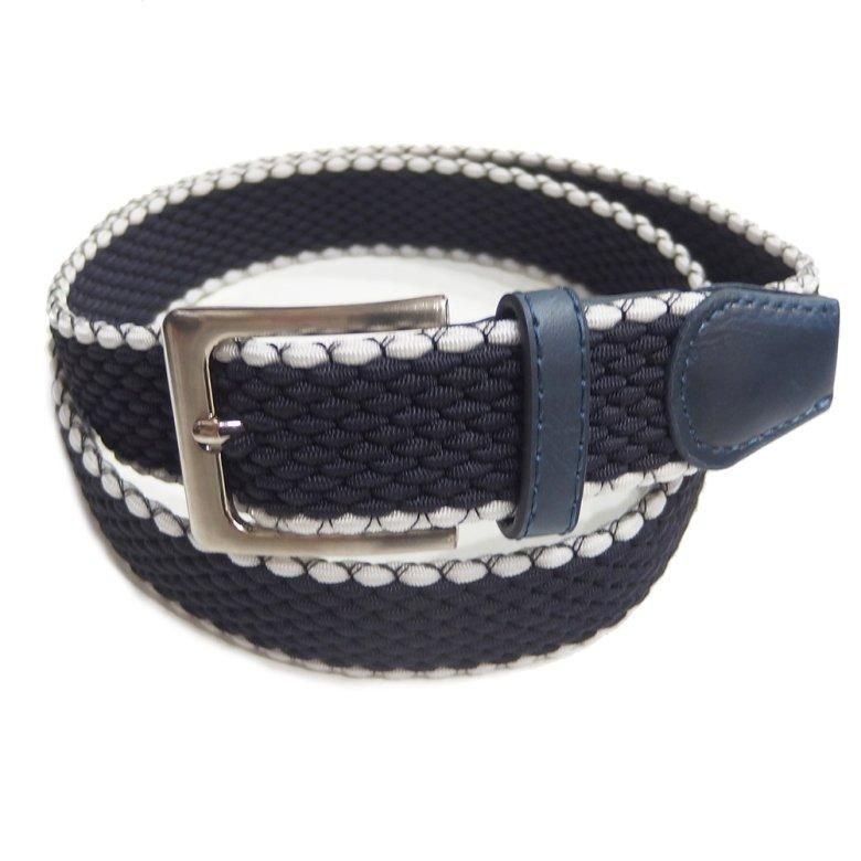 メッシュベルト・ネイビー×縁白・着け心地抜群なゴム素材伸縮タイプ・フリーサイズ