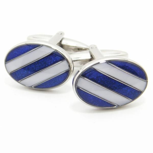 青&白のレジメンタルストライプのカフス(カフリンクス/カフスボタン)
