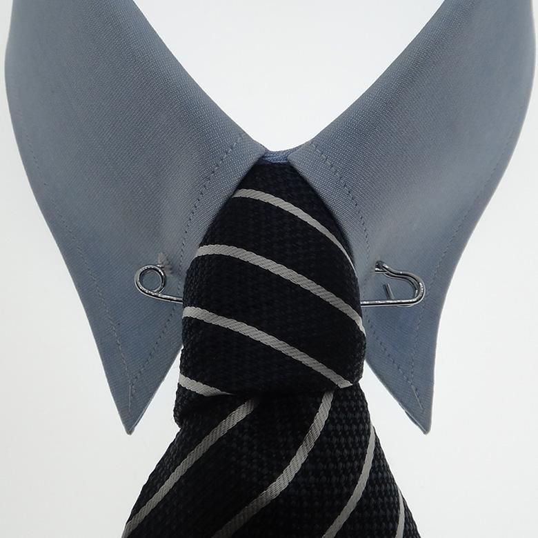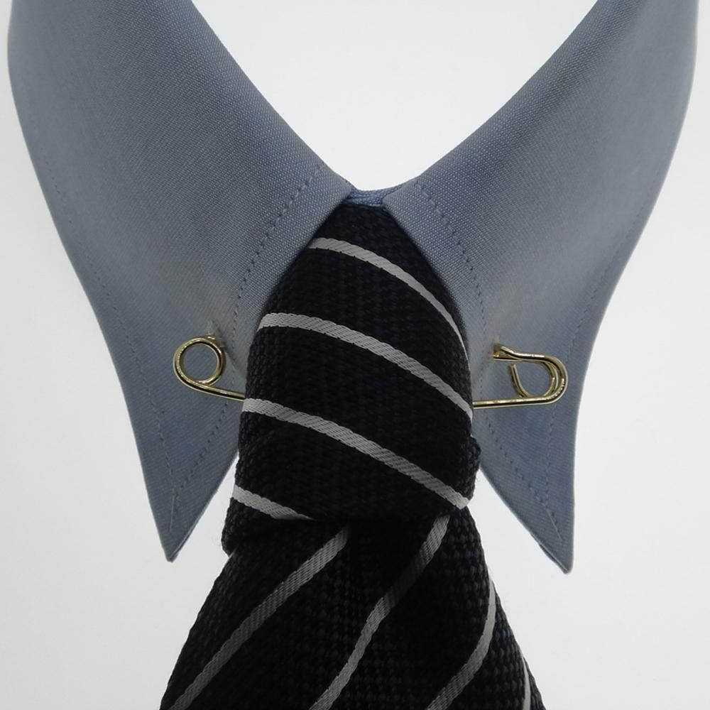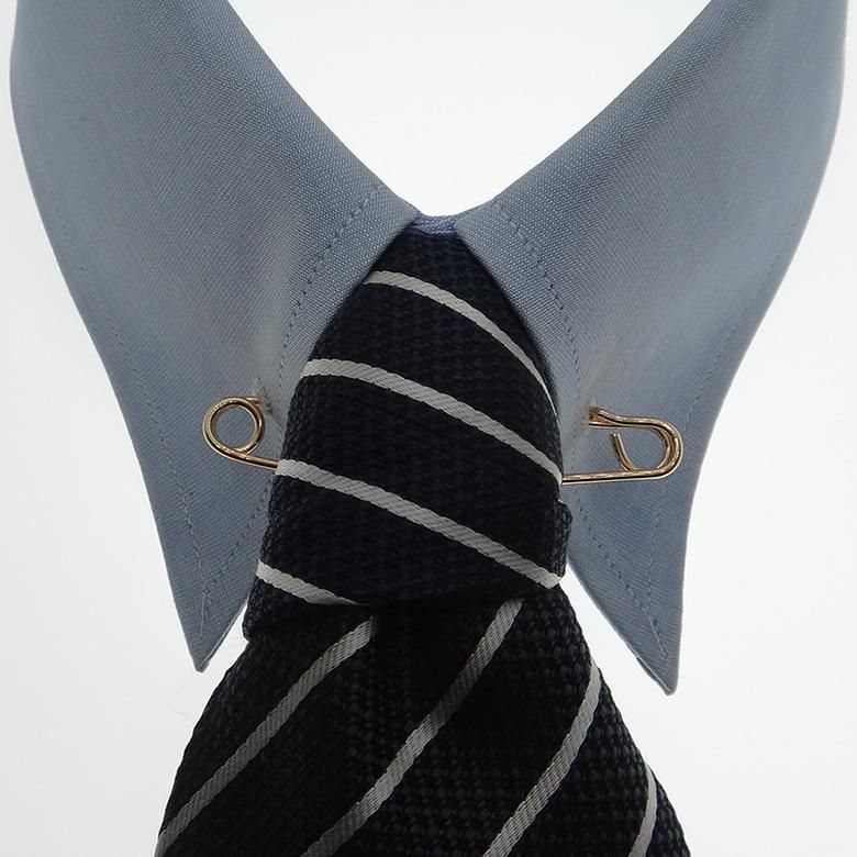 安全ピンタイプなので、穴が開いていなくてもシャツ襟に刺すことが出来れば使えます。