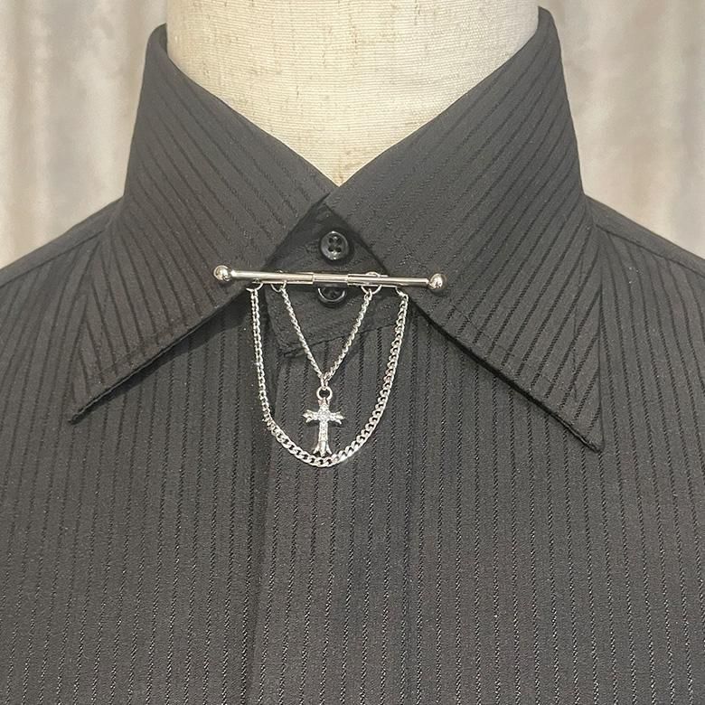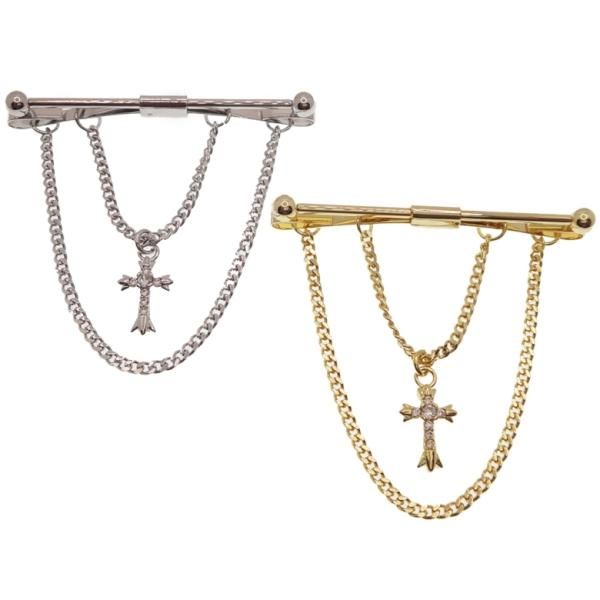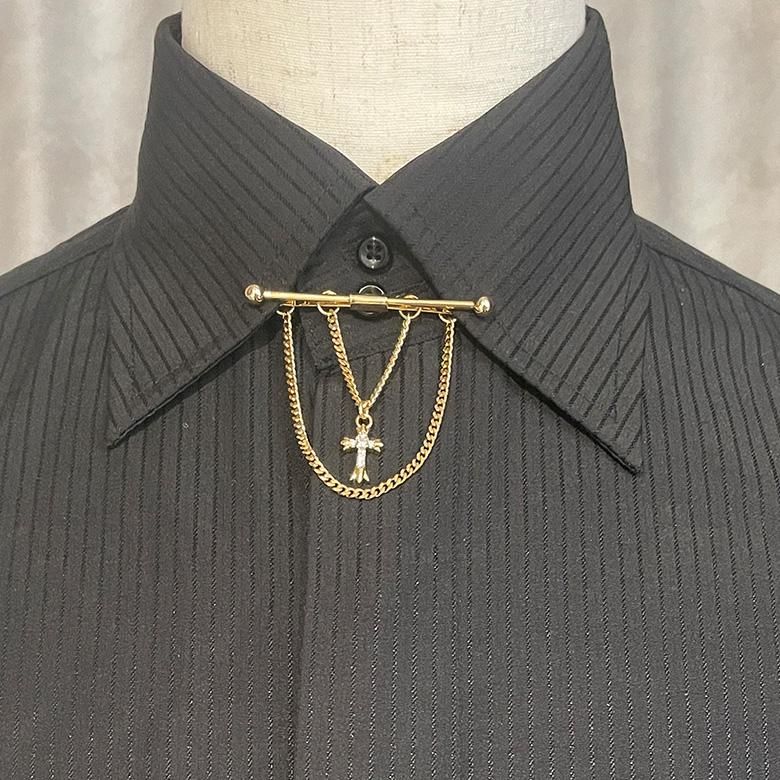 全2色 クロス ストーン モチーフ ピンホールシャツ用 カラーバー カラーピン 穴無しOKタイプ