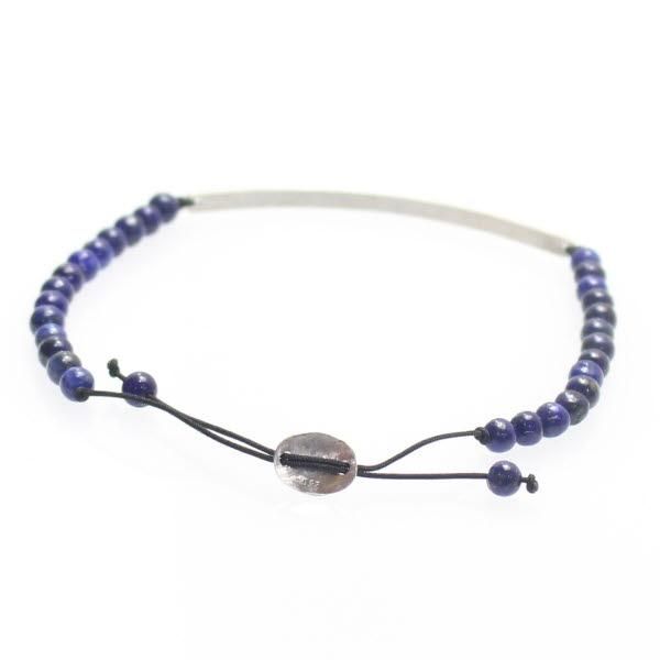 シルバーのハーフバングルとラピスラズリのブレスレット。