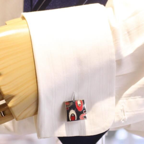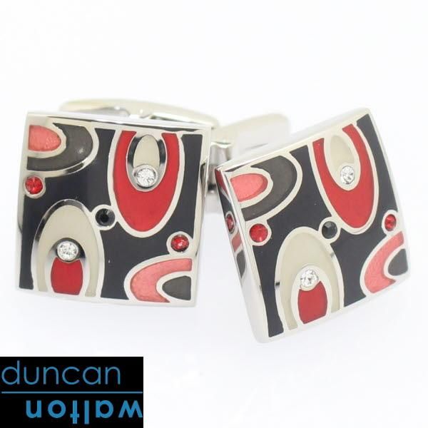 【Duncan Walton Luxury】EASTON・スワロフスキー・レッドのエナメルカフス(カフリンクス/カフスボタン)