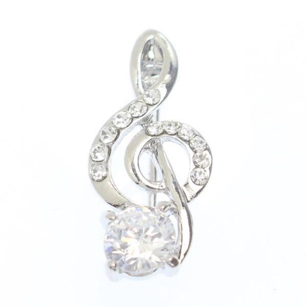シルバー・大きなストーンがついたト音記号のラペルブローチ・ラペルピン