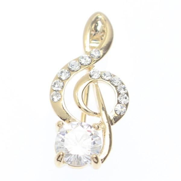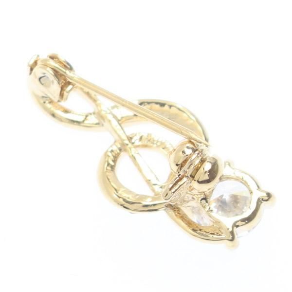 大きなクリアストーンが特徴のゴージャス感満点のゴールドのト音記号ブローチ。