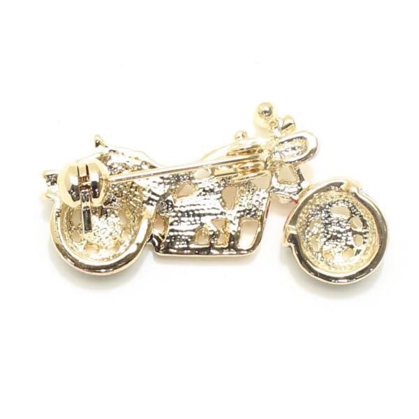 ガソリンタンク部分にクリアストーンが埋め込まれたレッドのバイクのブローチ。