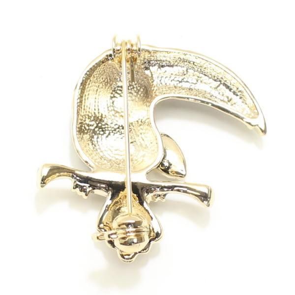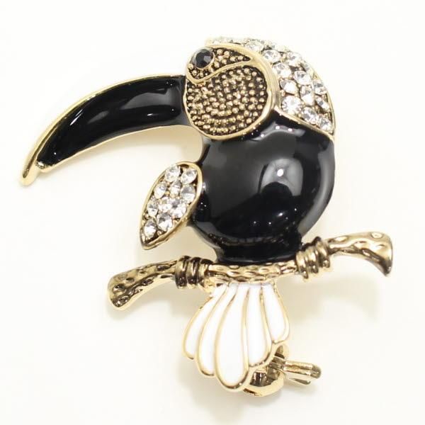 クリアストーンがついたオニオオハシ鳥のブローチ。