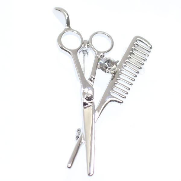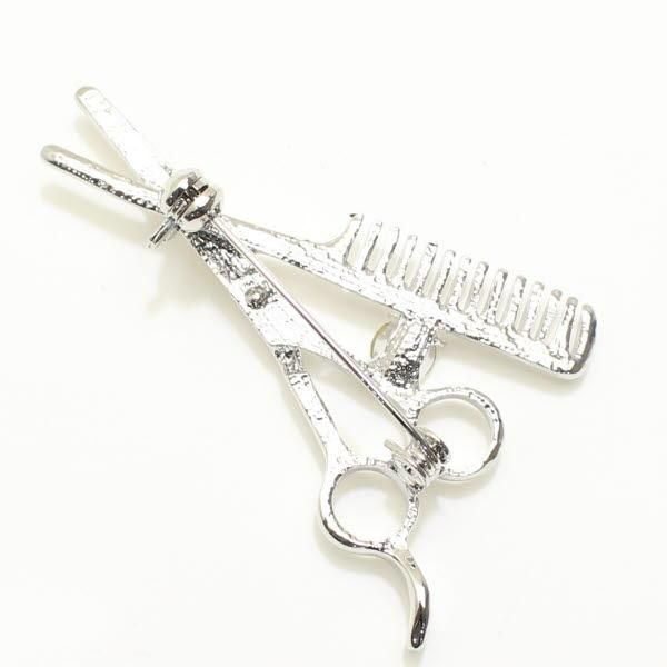 シルバー・華麗にちょっきんハサミとくしのラペルブローチ・ラペルピン