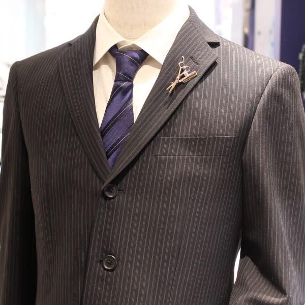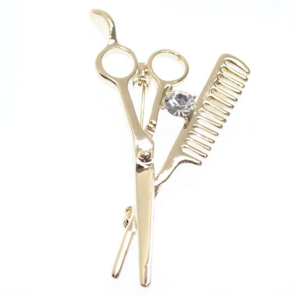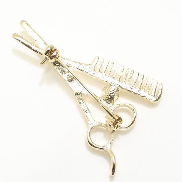 ゴールド・華麗にちょっきんハサミとくしのラペルブローチ・ラペルピン