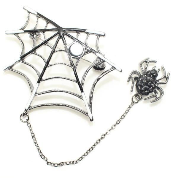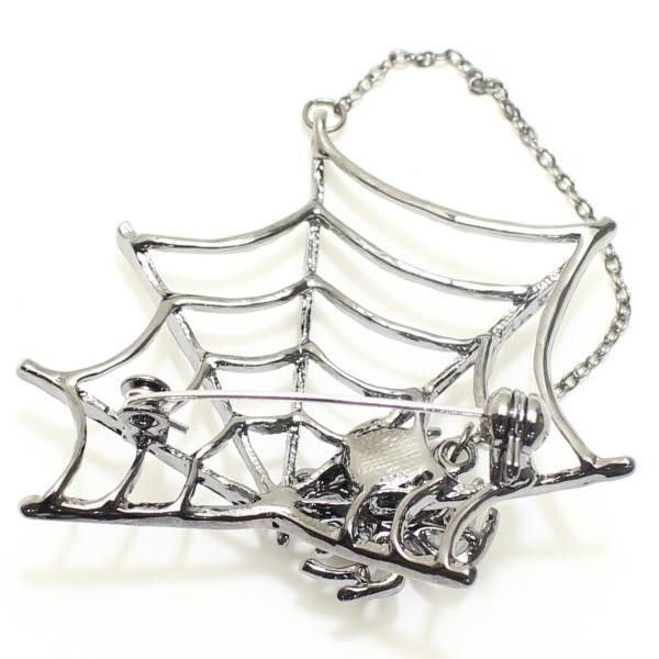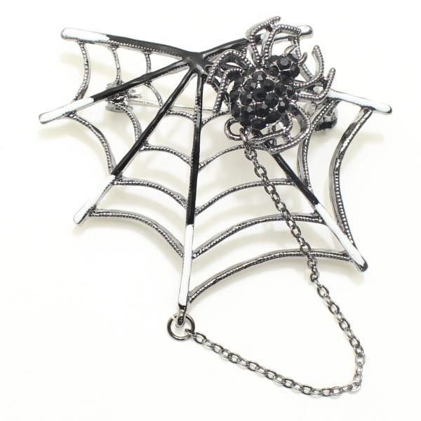 蜘蛛と蜘蛛の巣のブラックなブローチ。
