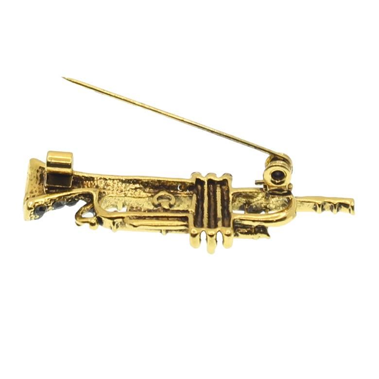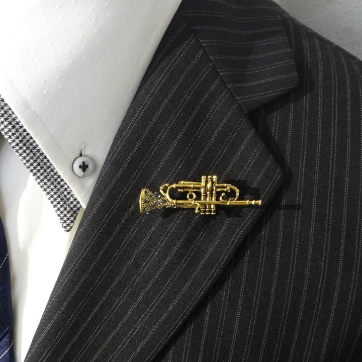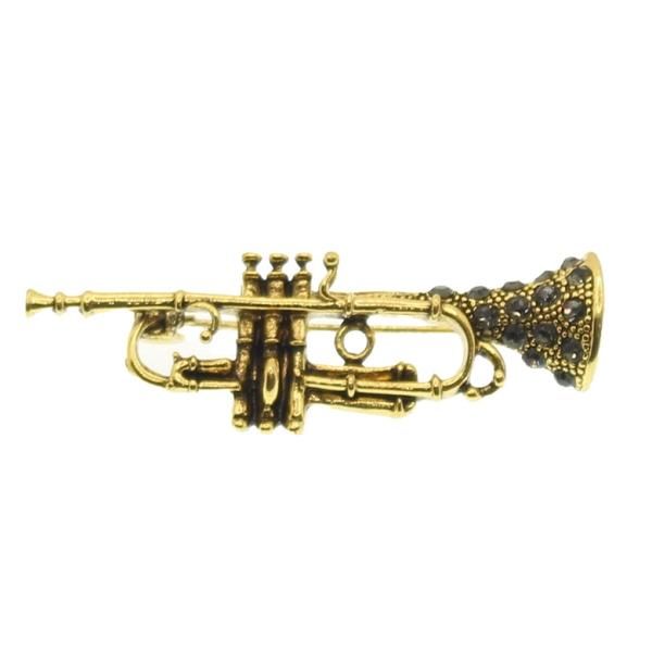 トランペット アンティーク風 ゴールド キラキストーン ラペルピン ブローチ ピンズ