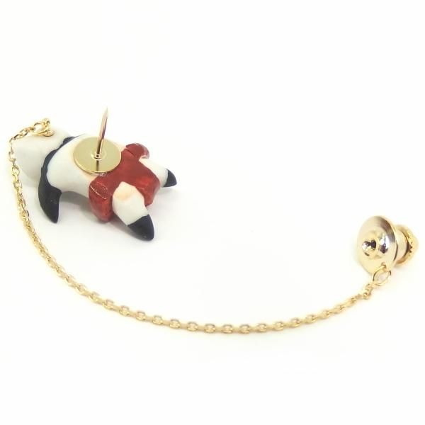 赤いまわしを着けた可愛いお相撲パンダの立ち姿のタイタック。