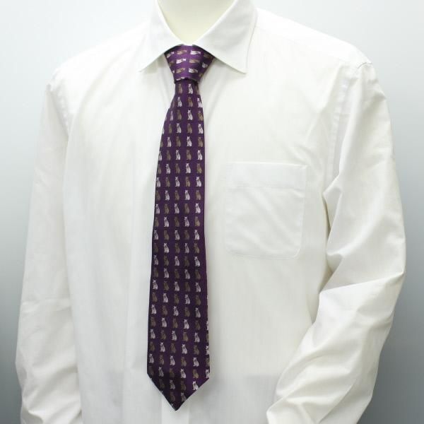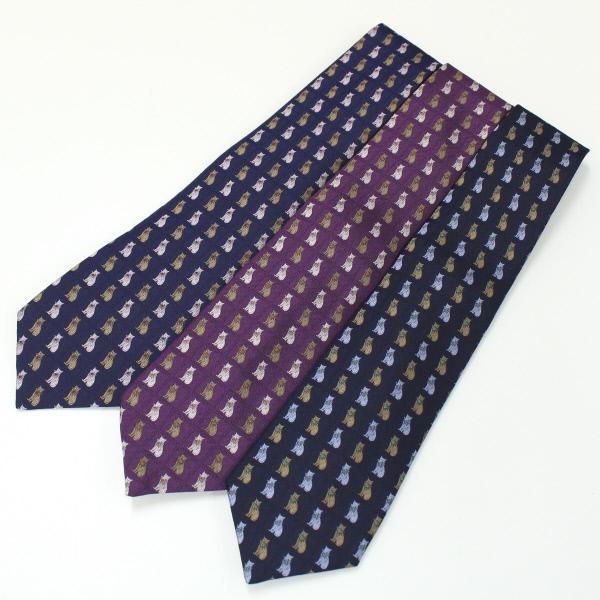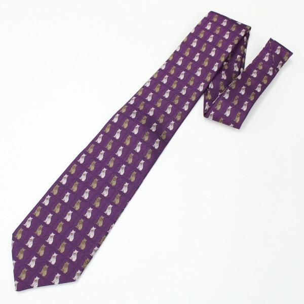 全3色・パープル・おしゃれ猫の西陣織ネクタイ
