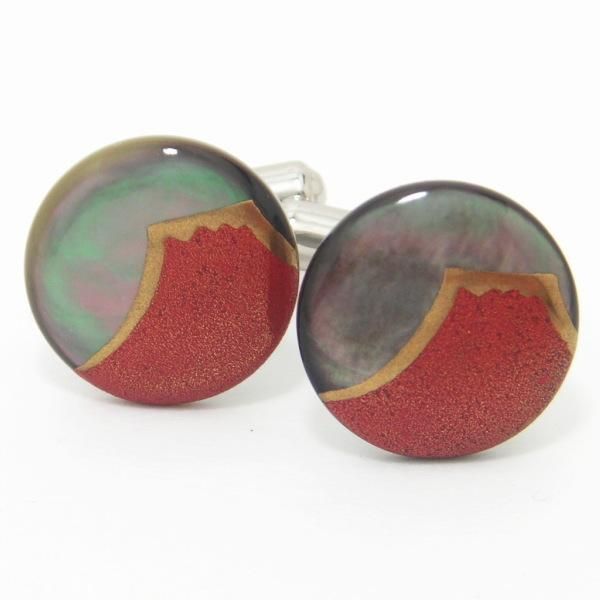 【受注生産品】赤富士の蒔絵カフス(カフリンクス/カフスボタン)