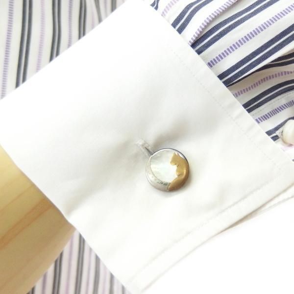 【受注生産品】月と猫の黒蝶貝蒔絵カフス(カフリンクス/カフスボタン)